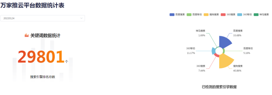 鑫歐建筑在萬家推云平臺(tái)助力下,走穩(wěn)了互聯(lián)網(wǎng)轉(zhuǎn)型之路。截止目前,關(guān)鍵詞總數(shù)達(dá)29801個(gè),官網(wǎng)優(yōu)化排名、視頻營銷等多個(gè)模塊的關(guān)鍵詞均在搜索引擎首頁展示,順利打響了品牌知名度。