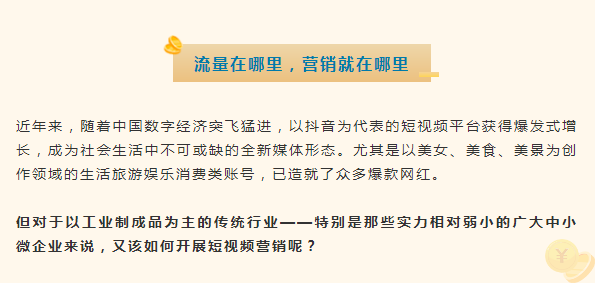當(dāng)我們認(rèn)識(shí)到上述三大誤區(qū),傳統(tǒng)行業(yè)中小微企業(yè)的短視頻營(yíng)銷之道,也就呼之欲出了——那就是腳踏實(shí)地聚焦企業(yè)產(chǎn)品營(yíng)銷類視頻輸出、標(biāo)準(zhǔn)化制作,放棄打造網(wǎng)紅爆款賬號(hào)等不切實(shí)際的幻想。